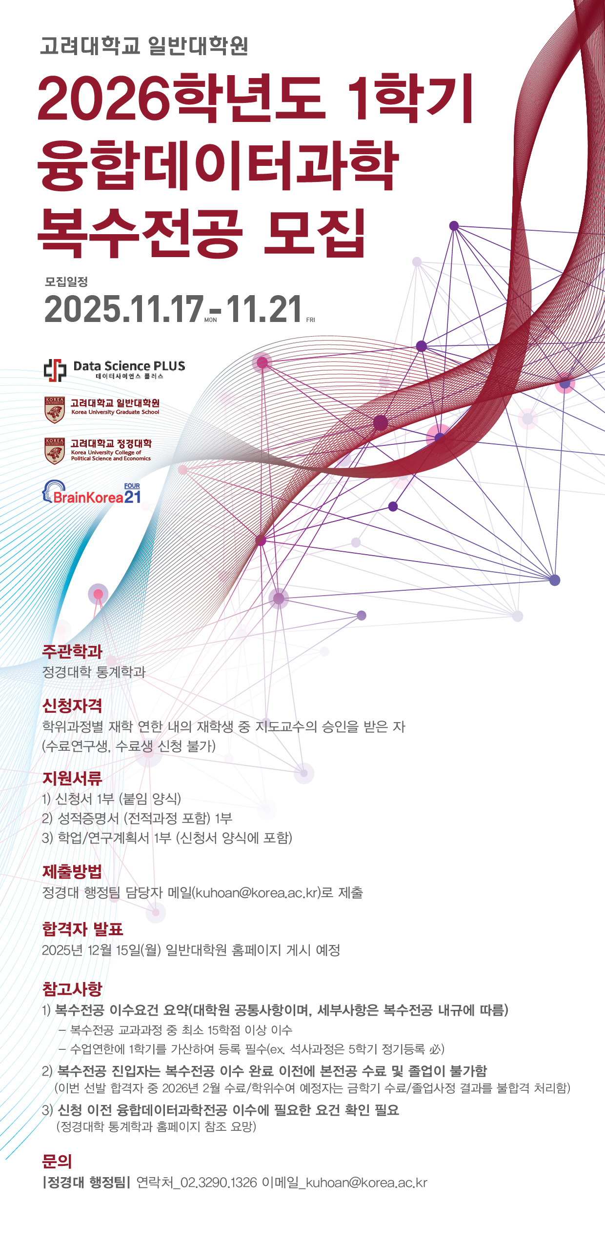 2026학년도 1학기 융합데이터과학 복수전공 모집